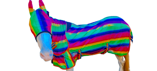 Rainbow Fly Rugs Pony Horse Sheet Tail Belly Cover Full Neck Blanket + Fly Mask